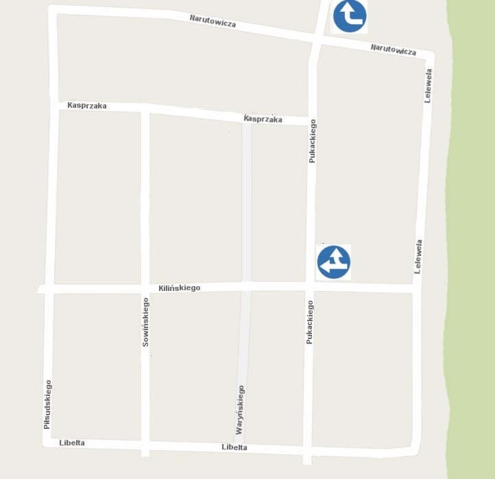 Zmiana organizacji ruchu polega na ustawieniu znaku C-2 (nakaz jazdy w prawo za znakiem) na ul. Narutowicza od strony ul. Lelewela w kierunku ul. Ofiar Katynia, oraz znaku C–6 (nakaz jazdy prosto lub w prawo) na ul. Kilińskiego od strony skrzyżowania ul. Lelewela – Kilińskiego. Ruch pojazdów z rejonu cmentarza przy ul. Lelewela będzie kierowany do ul. Ofiar Katynia – Koźmińska. Zmiana czasowa organizacji ruchu obowiązuje od dnia 31 października do 2 listopada 2017 r.