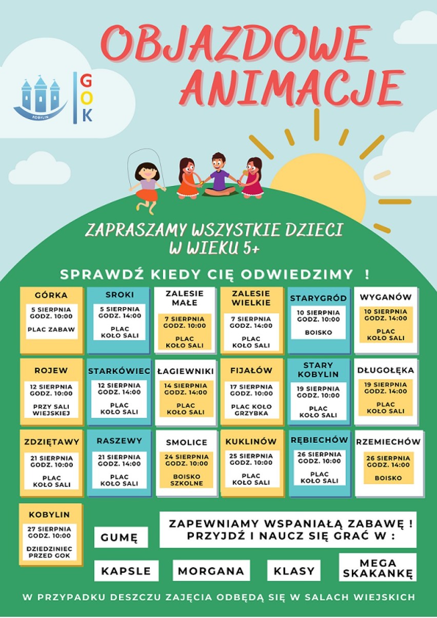 „Objazdowe Animacje” zakończą się 27 sierpnia przy GOK-u (szczegóły na plakacie poniżej).